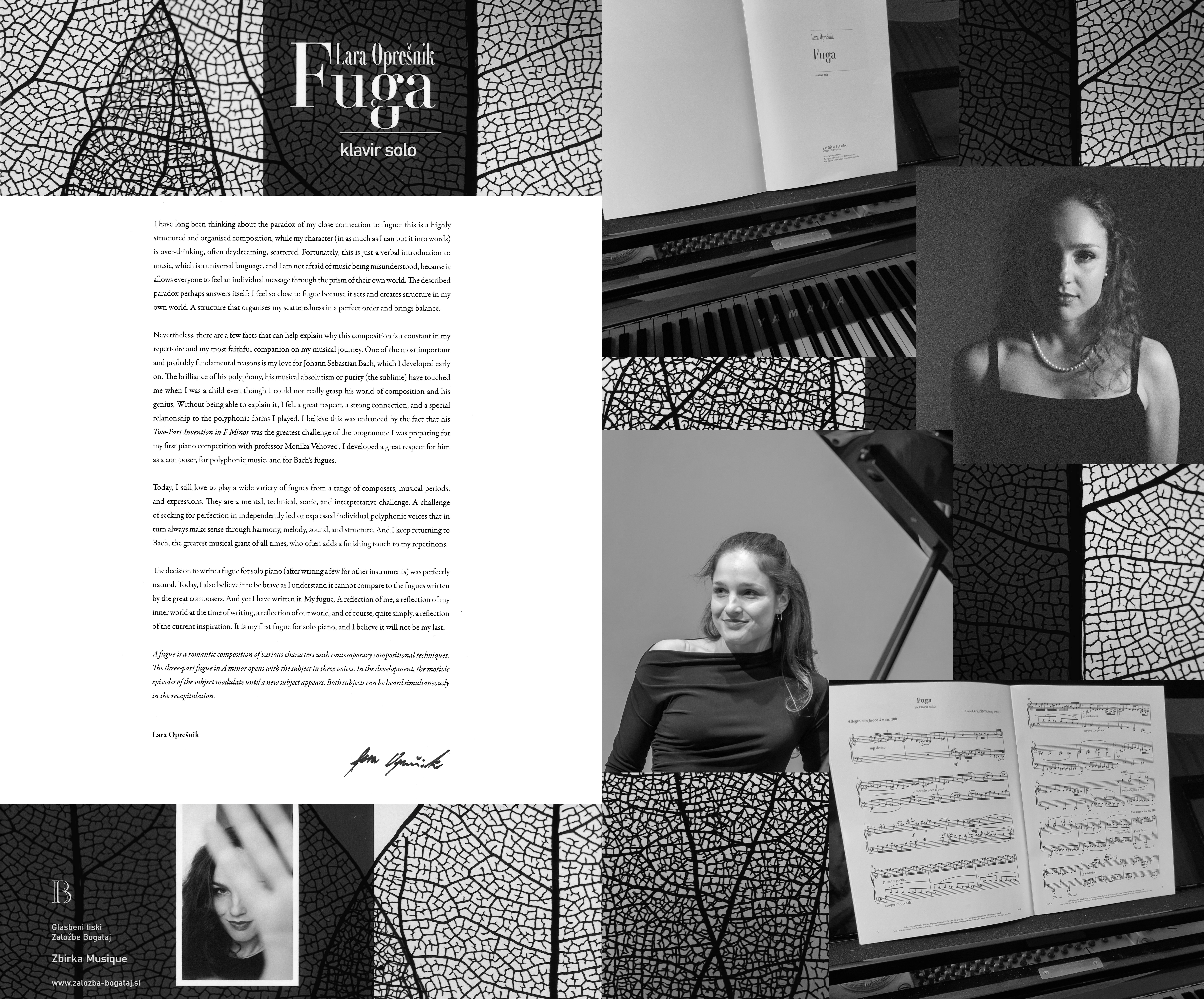 Pri založbi Bogataj so nedavno (2025) izšle note skladbe "Fuga" naše umetniške sodelavke, pianistke in skladateljice Lare Oprešnik. Skladba je bila na AG UL tudi posneta in je dostopna na spodnji YouTube povezavi:
